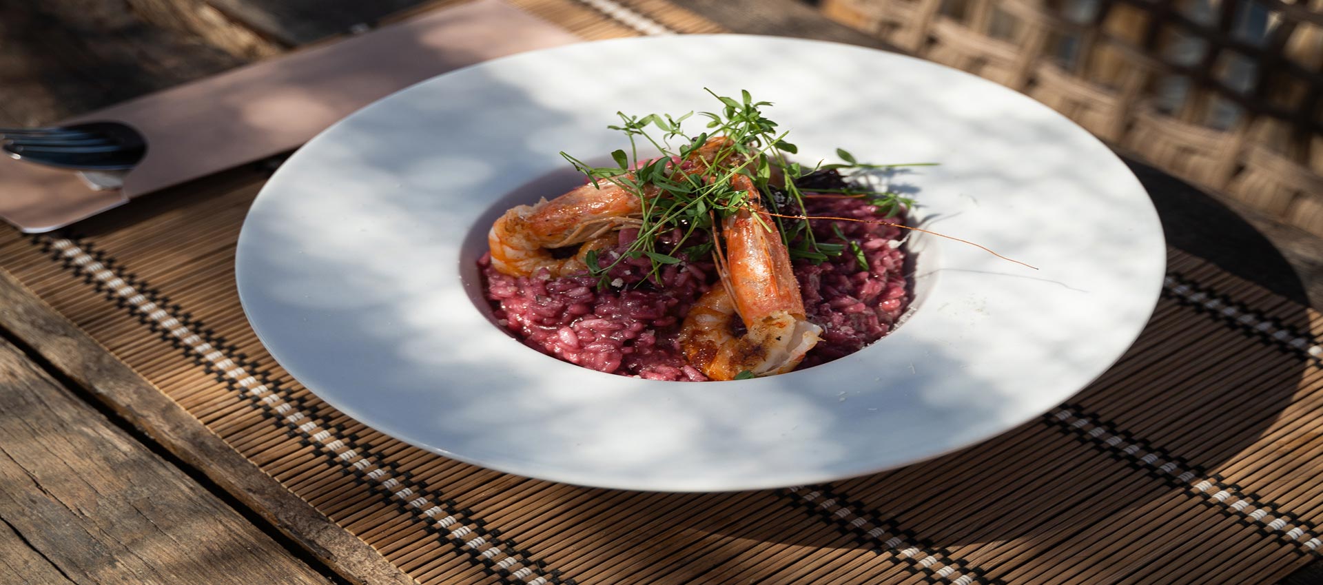 Carnaroli rice, caper, shrimps, squid, mussels, vongole in red tomato sauce, home made lobster oil